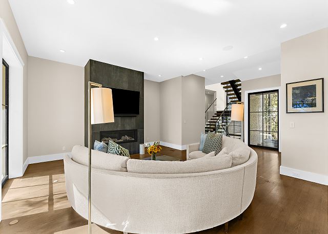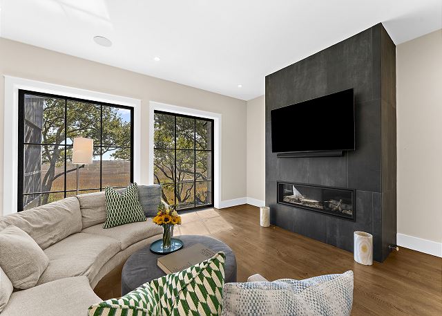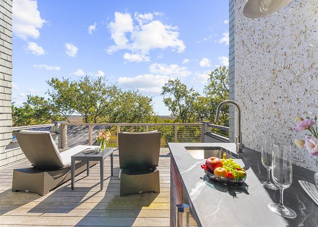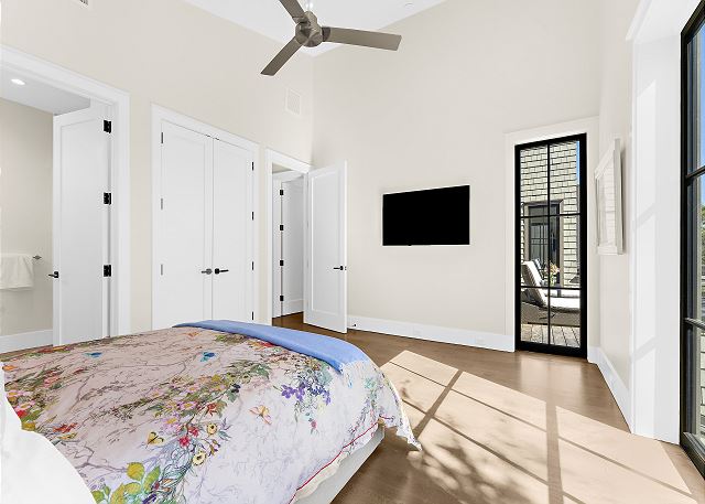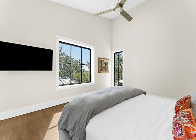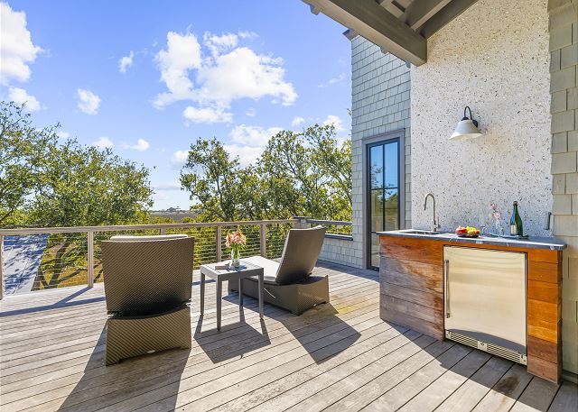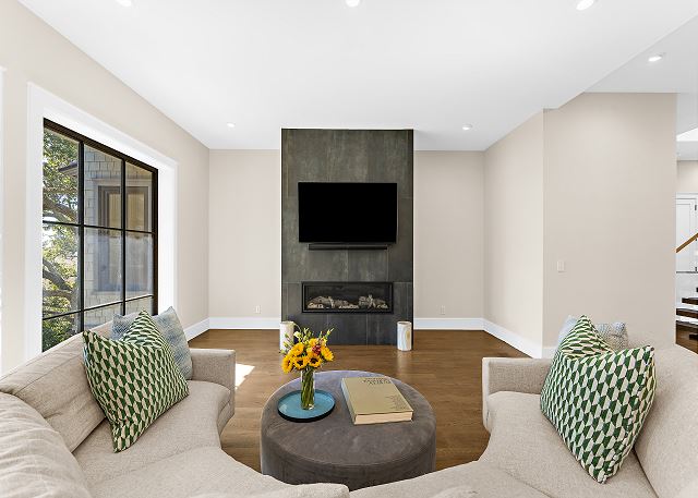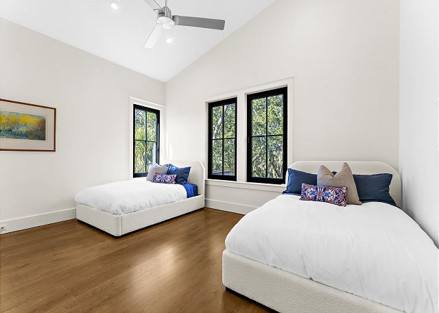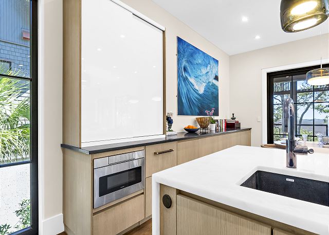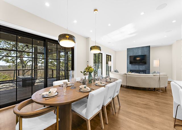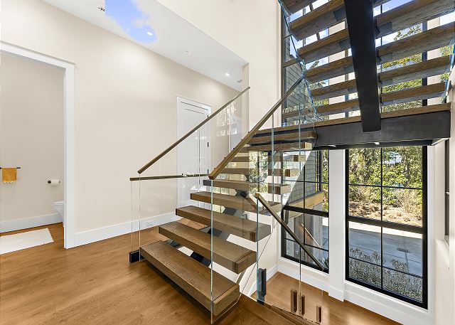 Sun-filled interiors and expansive windows frame beautiful views and create a bright, airy feel throughout. The open-concept living space flows seamlessly for gathering after beach days, while curated finishes and a soft coastal palette keep the atmosphere warm and welcoming.