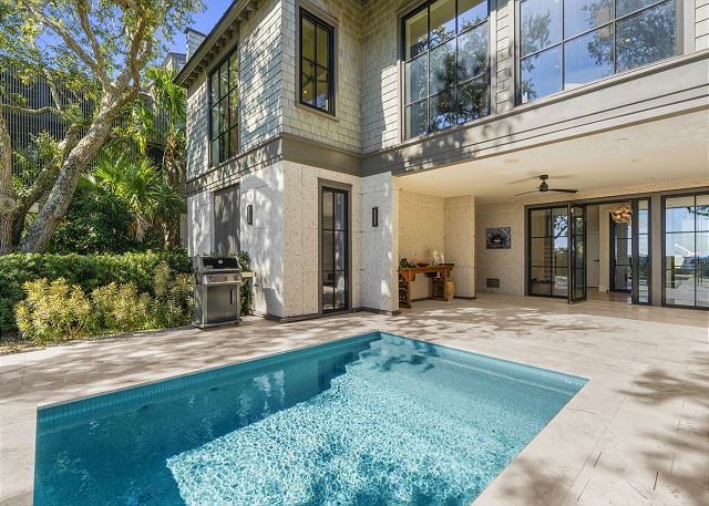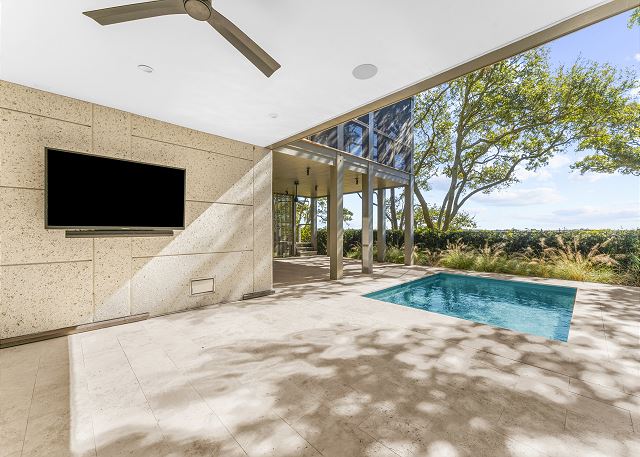 Outdoors, enjoy your private oasis with a sparkling pool, outdoor TV, expansive sun deck, and a screened-in porch with a retractable screen - perfect for morning coffee, shaded lounging, and breezy island evenings.