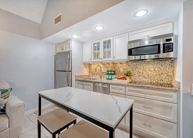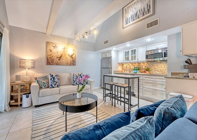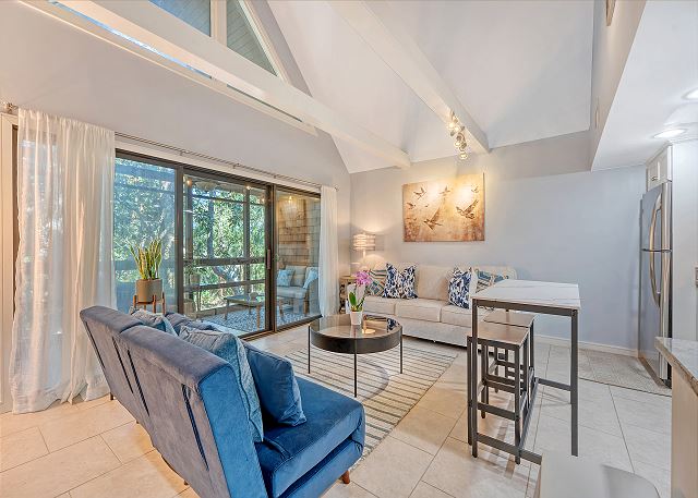 This adorable 2nd floor villa is located in the popular community of Mariners Watch (#4275). This is a great location, its just across the parking area from beach access, right across the street from Night Heron Park (playground, kids activities, nature center, basketball and soccer facilities), and just a few blocks away from The Sanctuary hotel (great restaurants, shopping, and spa!). There is a comfortable eat in, fully equipped kitchen. Just off the cozy living room is the screened in porch, the perfect spot to relax after a day on the beach or golf course. The large master bedroom has a king sized bed (Saatva motion mattress with massage feature!) and renovated bath. The sofa pulls out into a sofa sleeper as well for extra guests or kids.