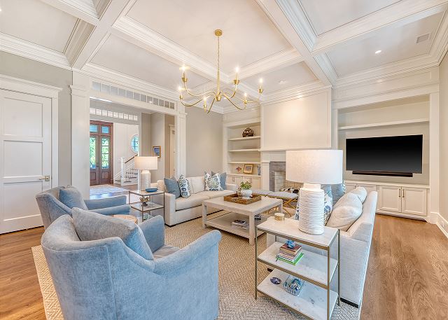 From the moment you step inside, 436 Fountain Grass feels less like a house and more like a chapter in your dream vacation. Morning sunlight pours into the bright, airy living room, spilling across soft coastal tones and inviting you to sink into the plush seating. The space flows effortlessly into the dining area, where laughter and conversation seem to linger long after the plates have been cleared. Off to the side, the butler’s pantry quietly keeps everything organized, while the sleek bar waits for the first pour of sunset cocktails.