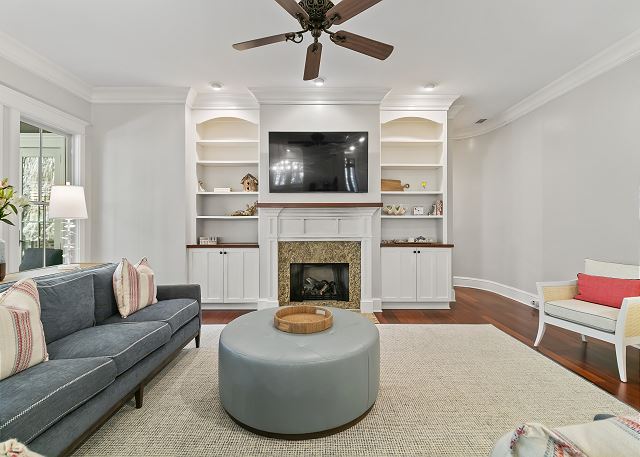 The second-floor open hall has plenty of room for the family entertainment center with access to a second-floor porch which makes it a lovely spot for enjoying the cool breezes from the encompassing tree canopy. Three additional bedrooms (another king, a queen, and a room with four twins) offer every comfort with walk-in closets and ensuite bathrooms.