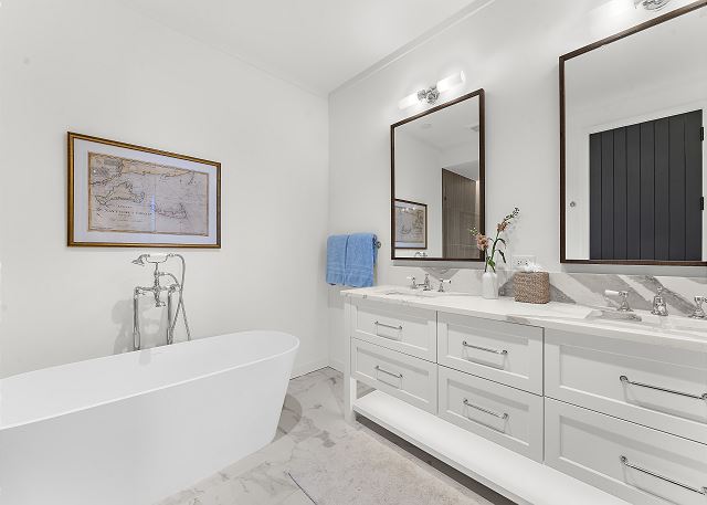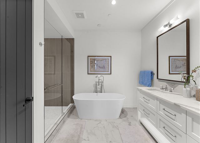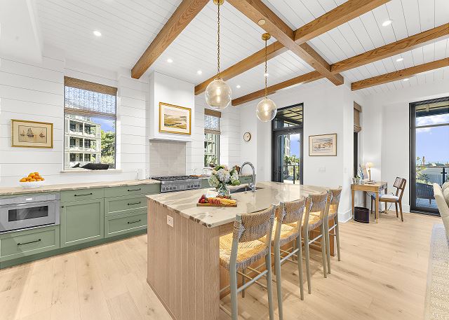 A spacious living space and contemporary kitchen with high end appliances greet you. The primary suite comes complete with a spa-quality bath and comfortable king bed. There are two guest bedrooms with ensuite baths for guests to relax. There is a laundry room plus butler's pantry with a mini fridge for some extra space.