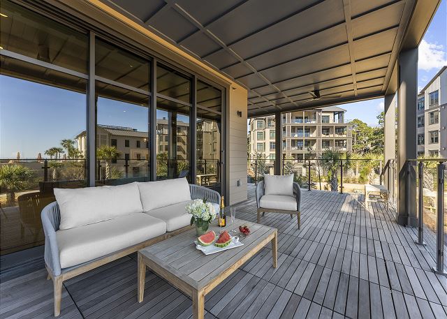This stunning new three build on the 1st floor (just above the garage) does have an elevator for easy access, this modern masterpiece property has a stunning view of The Cape's stunning landscaped courtyard and is an easy 2-3 min walk to Kiawah's famous beaches as well as all the Cape has to offer.