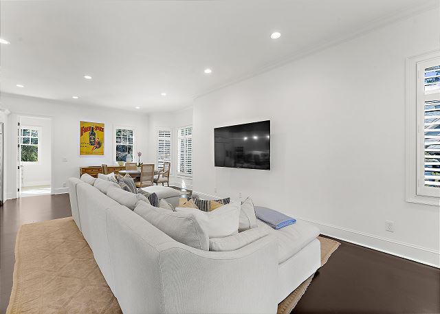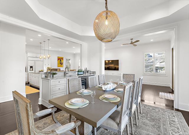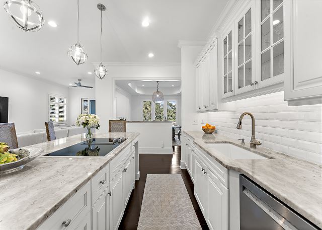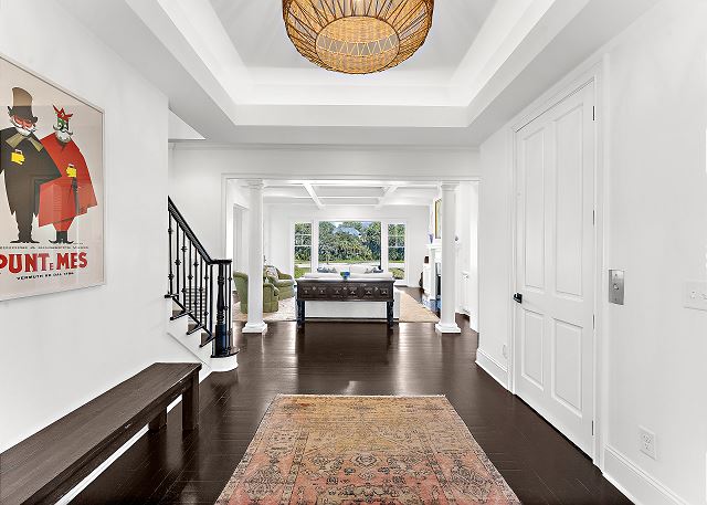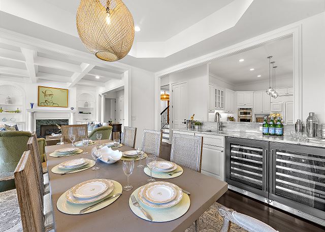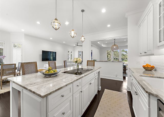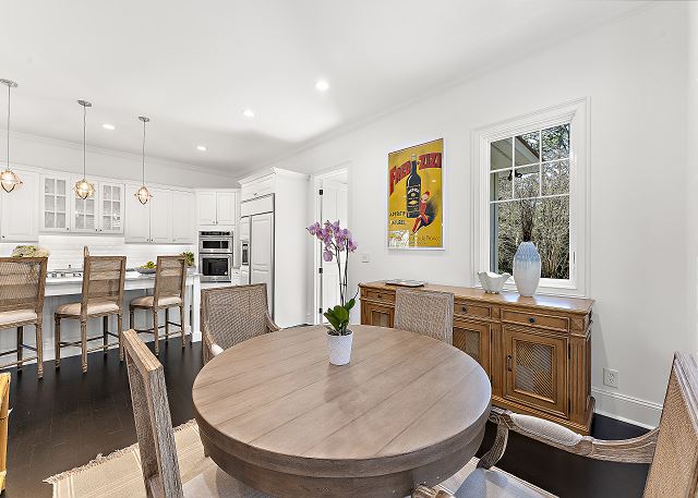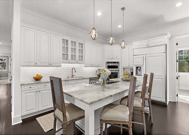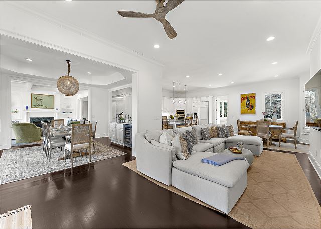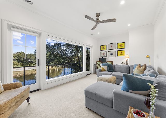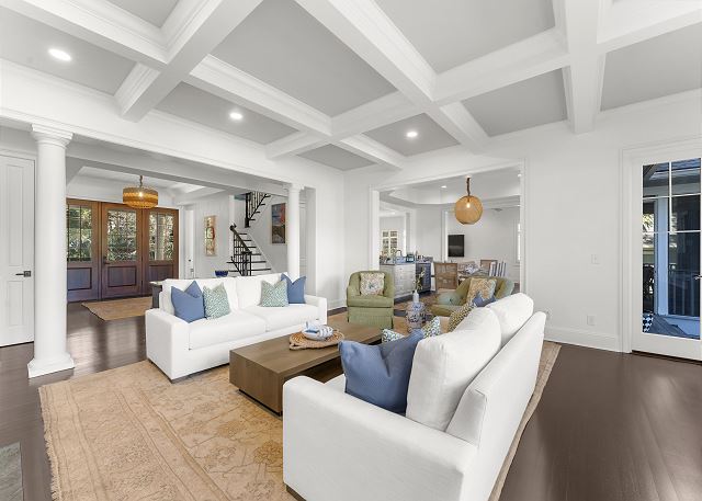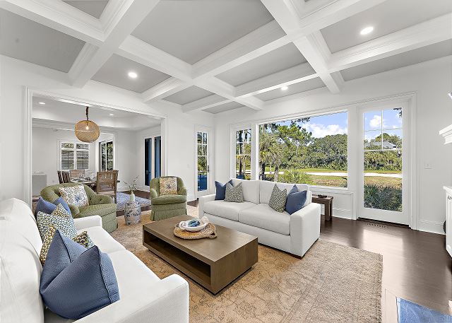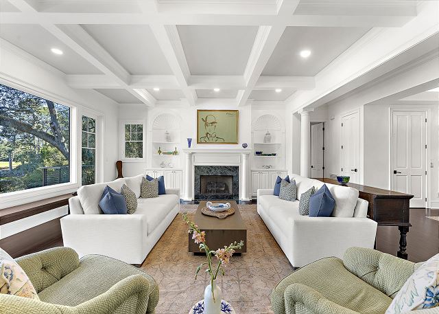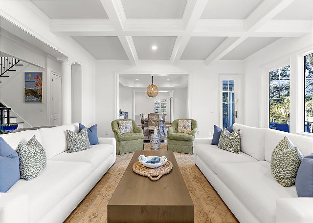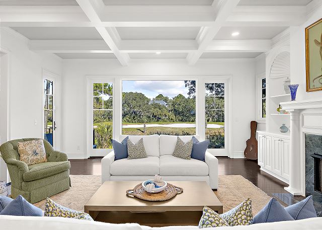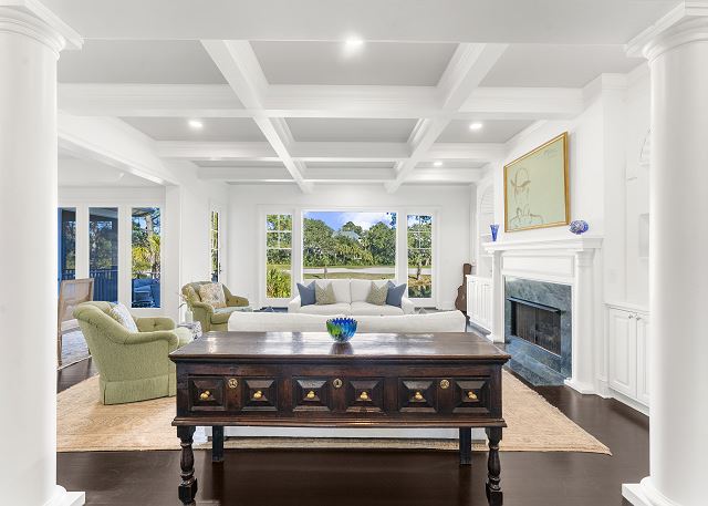 Beautifully sited on a tranquil Kiawah lagoon just a six-minute bicycle ride from the beach, the family-friendly home at 571 Whimbrel Road enjoys fairway views of the Tom Fazio-designed Osprey Point golf course and an airy interior with high ceilings and expansive windows.